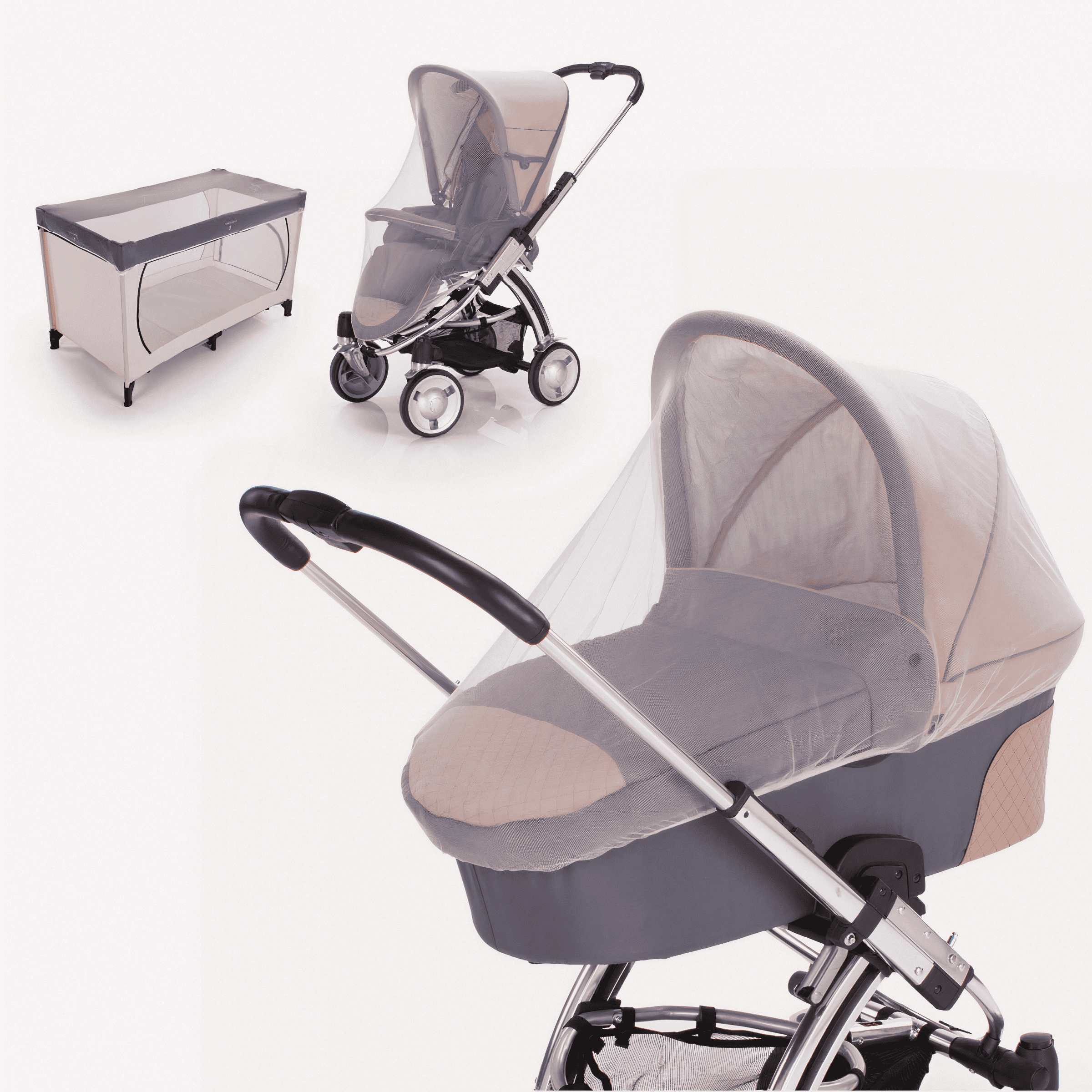 Onze klamboe kinderwagen is universeel ontworpen en past op de meeste standaard kinderwagens, buggy’s, reiswiegen en babybedjes.