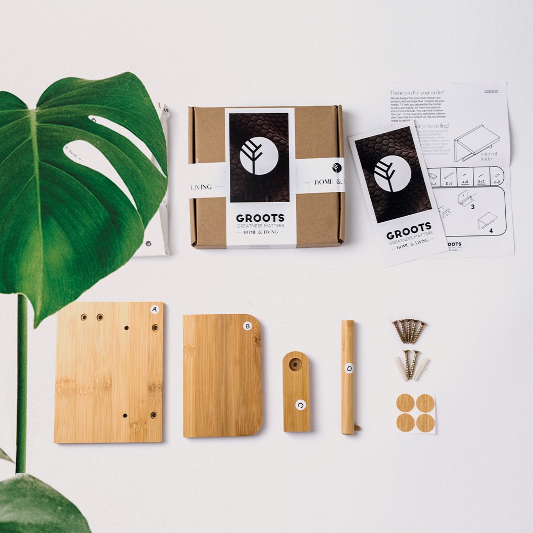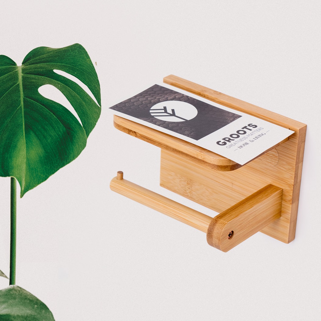 De toiletrolhouder met plankje van Groots® combineert twee functies in één stijlvol accessoire. Deze bamboe toiletrolhouder houdt je wc-rol binnen handbereik én biedt ruimte voor kleine items op het plankje.